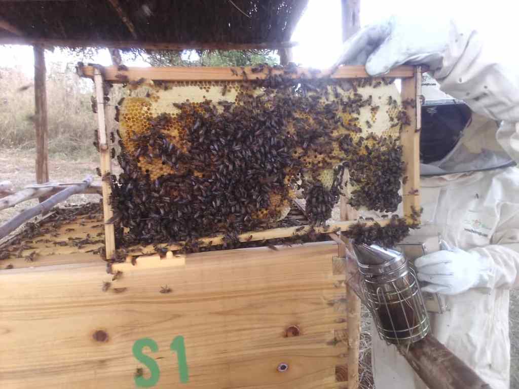 The shelves are stocked with fresh vegetables and fruits, eggs, and milk — all produced through ACF projects. We also offer locally produced honey, which sells out quickly.